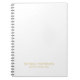 Professionell anteckningsbok med anpassat namn och text i klassisk guld serif-teckensnitt på vit bakgrund.