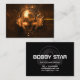 Den unika DJ-visitkorten med en abstrakt avfyrar exploderande DJ-symbol på ett mörkt svart kort. En fånga professionell Dj och producentvisitkort, för ett hållbart intryck! En coolaDJ-logotyp, DJ-symbol.