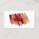 Handmålat rödfärgat och guld vattenfärgsfärgat affärskort i stänk. Modern ren stil som passar för flera yrken, t.ex. konstnärer, musiker, författare, konsulter m.fl. Meddelandet på framsidan lyder "Hej" och kan enkelt anpassas.