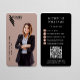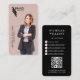 Modern affärskort, elegant och professionell. I designen finns en urklippsbildplatshållare som visningar ditt eget företagsfoto, företagets logotyp, namn och titel på framsidan. Anpassa ytterligare med kontaktuppgifter, qr-kod och social-media på baksidan. Om designen ska se ut som exempelmallen överför du ditt personliga företagsfoto med en genomskinlig eller vit bakgrund i PNG-format. Teckensnitt, storlek text, färg kan anpassas.