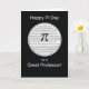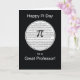 Önska din professor en Lycklig Pi Day med detta irrationella kort. En vit cirkel med Pi-symbolen och siffrorna står på en svart bakgrund.
