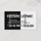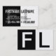 Den moderna samtidaa designen av en slå svartvit affär för kickkontrast profilerar kortet. Denna är tryckdesignen för två sida var allt är skriftlig på beklädasidan. Beklädavänstersidadelen av visitkorten är svart med vittext på den och ett stort monogrambrev för mörka grå färg av förnamnet som en bakgrund. Den högra delen är vit med svart text på den och med ett stort monogrambrev av efternamn som en bakgrund. Baken delas också på halva, var vänstersidadelen är svart och den högra delen är vit och de har också stora monogrambrev, men här kontrasterar vit på svart bakgrund och kontrasterar svart på vitbakgrund. Den mycket djärva, moderna, yrkesmässiga och slå designen, som ska, gör sure ett intryck på din beställare och ska stativ ut från andra visitkortar från hans packe av visitkortar.
