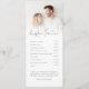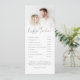 Program and Menu 2 Photo Overlay Wedding. A dual purpose design combining your reception timeline with your menu on the other side. An informal set typography in black for the main headings Menu and Reception timeline, complementing the rest of the text which you can easily personalise. Replace the sample photos on each side with your own favorites.