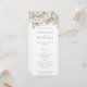 Ge dina gäster ett vackert designat bröllopsprogram som parar funktioner med klassisk elegans. Vårt program för anpassade har ett känsligt motiv för blommigten, med liljor i mjuka skuggor av , kräm och taupe, accentuerade av mjukt stänk av cerulärt och grått. Bröllopsfesten introduceras på programmets framsida, medan baksidan beskriver ceremonins ordningsföljd. Bägge sidorna är utformade med vintagens blommigt och skapar en sammanhängande och charmerande guide för din speciella dag.