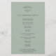 Storleka 5,5 x 8,5 tum på en budgetpris, på en elegant 110 lb LINEN lagrar - för en lyxkänsla till underbart värde är detta perfekt för program, inbjudningar och menyer osv. Detta storleka budgetalternativ finns också tillgängligt i andra pappra val. SEMI-GLOSS 110 lb-kortet lagrar har ungefär samma tjocklek som ett vykort, så fungerar också bra för inbjudningar. FELT 100 lbs papper är en färgad, INTE vit, vilket ger en kraftig tryckning. MATTE 80 lbs pappra lagrar är ljust vitt, för skarp utskrift, underbart för dina menyer och program, medan SATIN 80 lbs pappra är tunt och lätt, perfekt för höljen. OBSERVERA ATT ALTERNATIVET ENVELOPES ÄR EN LITEN STÖRRE STORLEK PÅ CIRKA 6,75" x 9". En elegant grönt fet gräns med text i en blandning av svart och guld för dina bröllopsprogram. Texten, som du lätt kan anpassa, är centrerad på båda sidor. En samordnande grönt är på baksidan.