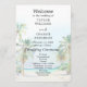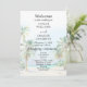 Den här eleganten och det vackra bröllopsprogrammet med vattenfärg har en strand, blå himmel och handflatan träd. Texten kombinerar handskript och sans serif typsnitt för en snyggt och ett modernt utseende. Det här är perfekt för en sommarstrand eller ett tropiskt destinationsbröllop.