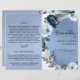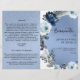 Elegante programa de quinceañera con hermoso arreglo blommigt en acuearela en varios tonos de azúl y detalles en imitación de alumo azul. Uso de elegante caligrafía. Nuestro texto es solo un ejemplo, ya que puedes agregar cualquier información o mensaje que prefieras. Puedes hacer ajust es de tamaño de texto, färg y estilo seleccionando "seguir personalizando". NOTA: Este programa es enviado plano y RequiERE QUE LO DOBLE MANUALMENTE en casa. Se recomienda el tipo de papel seleccionado por disñador. Bjud in que coordina-disponibel. Este mismo programa esta disponible también en Inglés. Parte de nuestra colección "Elegant Blue Watercolor Blommigt Quinceañera", con variedad de productos para koordinar DISonibles.