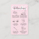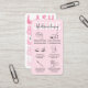 Se till att dina klienter vet hur de ska rengöra sina tillägg av ögonfransar med hjälp av det här affärskortet för instruktion för applicering av lash-bad. Det här kortet för tankbad för rosa innehåller omsorgsikoner för varje steg, ett trendig för rosa estetik och utrymme för din affärsinformation. Perfekt att lägga till i dina lash-schampo-order!