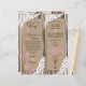 Rustiskt trä med vit snöre och rosa lavenderblomma bouquet i Mason burk med pärlhöft, snöre och tvillingtrims över textbakgrunden och hjärtklappning med bröllopsprogrammet land stil.