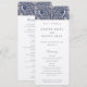 Detta viktorianska bröllopsprogramkort beskriver vackert det speciella dagens tillvägagångssätt. Prydd med en elegant marinblå och krämfärgad färgskala har kortet detaljerade blommönster och charmiga älsklingar som frammanar den viktorianska epokens sofistikering. Paret monogram initialer vilar försiktigt bland designen och lägger till en personlig och romantisk touch. Framsidan av programmet välkomnar varmt gästerna och presenterar bröllopspartiet medan baksidan noggrant beskriver ceremonieordningen från förspel till utgång. Tillverkad med grace och stil är detta programkort inte bara en guide för dina gäster utan också en skattad souvenir av din tidlösa kärlek.