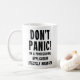Det här vackra vita mugg har frasen "Panic! Jag är en Professionell Application Lifecycle Manager." Det är perfektens följeslagare för dem som arbetar med software och projektledning, skapar det som ett perfekt kontor mugg för daglig använda eller som en laggåva under kampanjer och milstolpar.