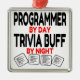 Den här prydnaden med citatet "Programmer by Day Trivia Buff by Night" är perfekt för alla programmerare som kärlek spelar trivia.