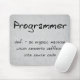 Programmerare - def. - en organisk maskin, som konverterar koffein in i källa kodifierar - grå mousepad med svart bokstäver.