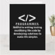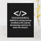 Programmerkodning Developer Programmer Card-originalutformning av Nisha Prabhu. Lås upp din passion för programmering med det här pulserande programmerkortet! Minneshögtidlighålla kodningskonsten med en design som förkroppsligar kreativitet och innovation. Oavsett om du är en säsongsbetonad utvecklare eller en aspirerande kodare, så talar det här kortet om din resa. En modern estetik som återspeglar teknikens dynamiska värld. Perfektens motivation för den dagliga kodningen av äventyr! Perfekt för att dela kodningsprestationer, födelsedagspresent önskemål eller bara en enkel kommentar till andra teknikentusiaster. Gå med utvecklarcommunityn och låt kreativiteten skina igenom varje kodrad. Ta ditt programvarukort i dag och sprid kärlek för kodning!