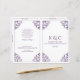 Nadine Bröllopsprogram Foldover (Plum): Låt dina gäster följa med i servicestorden i bröllop med den här unika vintagen i bröllopsprogrammet för hörn i plommon/lila. Dessa kommer att utveckla komen (utan skugga). Designen färg är monterad på plommon, men du kan ändra färg i designen genom att ändra färg i bakgrunden. **HUR DU ÄNDRAR DIN DESIGN FÄRG** 1) Klicka på knappen "Anpassa". 2) Klicka på länken "ClICK TO CUSTOMIZE FURTHER" (KLICKA FÖR ATT ANPASSA YTTERLIGARE) i grund. Då kan du ändra "BACKGROUND FÄRG" till bröllop färg. Glöm inte att ändra texten färg så att den stämmer överens med din design.