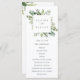 I detta ceremoniprogram i bröllop finns målade vattenfärger eukalyptus grey, grönt löv och ett kvadratiskt ram. Om du vill ha en mer avancerad anpassning av den här designen klickar du på länken Anpassa ytterligare. Matchande objekt är också tillgängliga.