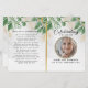 Anpassa det här moderna begravningsprogrammet för elegant med eget foto och egen text för att skapa en speciell hyllning till ditt barn. Ett "In Loving Memory"-program som innehåller ett blad av eukalyptus med guld accent löv. minnesprogram. På framsidan finns ett foto av din älskade, deras namn, data, minnesplatsen och evenemangets datum. På insidan finns en obituär serviceordning, och på baksidan finns ett tackkort, och på butikens plats finns också andra konstruktioner som erbjuder botaniskt grönt med ro och löv design och glitter/gyllene accents och Eucalyptus foliage för att uppfylla alla krav.