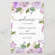 bröllopsprogram av lila blommigt med en gräns av vattenfärgade blommor i skuggor av pastellviolett, lavender, lilac och elfenben. Inuti finns meddelandet "Välkommen till bröllop" i ett elegant-skript tillsammans med namn och datum. Baksidan har din ceremoni, bröllopsfest och tack. Dessa bröllopsprogram i billigten trycks på lakan av papper för ett budgetvänligt alternativ och är perfekter för ett vår eller sommar-bröllop.