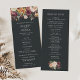 Programmet Rustic elegant bröllop innehåller dina ceremonier i vita bokstäver på en rik med svart bakgrund, där namn fylls med målade vattenfärgblommor i rikens höstskuggor av burgundi, marsala, rosa, elfenben och mörk grönt. På motsatt sida visas bröllopsfestens medlemmar med fält som lätt kan redigeras. Samordnar med vår bröllopsinbjudan till Moonlight Garden för chic fall- eller vinterbröllop. Använda mallen fält för att lägga till information om ceremoni och brudens sida och klicka sedan på Anpassa den om du vill flytta inslag om det behövs. Behöver du hjälp? Kontakta mig via länken "Fråga den här designern" på den här sidan.