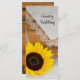 Visa dina gäster i bröllop i ordningen för ceremonin i giftermål och tidslinjen när du anpassar det charmerande programmet Rustic Gult Solros och Snöre Landsbyggsbröllop. Den här avslappnaden, men det westerna bröllopsprogrammet med ranch-tema i klassens anpassningsbar, har ett fyrkantigt fotografi av en blommar av gult solros, vit möhippa veil och blommigt trimmad linnäsduk med brunt vävt laved.