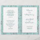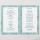 Mall med mjukt, katolskt bröllopsprogram, med rustik, blå träbakgrund, tryckt på valfri papper. Det här programmet med ett lager innehåller fyra sidor att anpassa. Fasta vita paneler innehåller den färgblå texten som har ett modernt utseende av kombinerat handskrivet skript och tryckt typsnitt. På varje sida finns det utrymme för mycket text för religiösa, kyrkans ceremoni. På sista sidan (baksidan av programmet när det viks) finns ett avsnitt för skript (provet är "Kärlek är patient, kärlek är snäll" från 1 korintianer) och ett meddelande från bruden och brudgummen. Varje lakan på papper har text på båda sidor för att skapa ett program som ska vikas efter köpet.