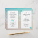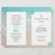 Programmall för stora katolska/kristna ceremonier för Beach-bröllopet, om du vill lägga till mycket text på alla fyra sidor. Den kristna skriften eller en vers kan läggas till på baksidan tillsammans med ett tack till familj, vänner och gäster. Sceniskt blått hav vatten och sandstrandbild på papper som ska vikas EFTER KÖP.