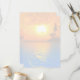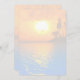 Bröllopsprogram fläkt papper med bakgrundsbild av tropiska solnedgångar. Bild ligger på båda sidor av papper kvalitet med ett urval av uppgraderingar och kant.