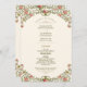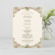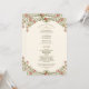 Det viktoriska bröllopsprogrammet i elegant har en stor i guld som är försedd med klättrande vinrankor av rosa ros och ömtålig grönsak. Den invecklade informationen om blommigten och den klassiska kolumndesignen visar på tidslassofistikering och romantisk charm. Perfekt för par som vill ha vintage-inspirerad bröllop-stationär med lyxliknande estetik och lite blommigt elegans.