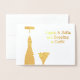 Den här glittriga flaskan i guld med korkskruvmotiv är ett glamoröst och modernt sätt att sprida glädjande nyheter. Förlovning, stor framgång eller bebis på väg? Låt de du bryr dig om veta på ett sätt som de kommer att minnas i åratal genom att personliggöra den här hälsningen med din bild. Ett valfritt textfält låter dig anpassa den här som en inbjudan till din fest.