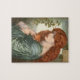 Proserpine av Dante Gabriel Rossetti, olja på kanfas 1882, Pre-Raphaelitemålning av kvinnan i blåttrobe med långt kastanjebrunt hår, med räcka-målad diktinskrift.