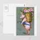 Vintage tyskt nyårskort som visar ett gris som bär ett blått paraply och bär en stor korgare basket av blommor på ryggen. Kortmeddelandet är "Prosit Neujahr" ( Gott nytt år).