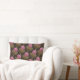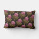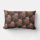 Ländryggskudde med akvarell protea illustration på mörk bakgrund.