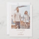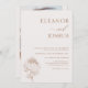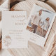 Protea Bohemian Bröllopbjudan till minimalistiskt stativ, enkel, modern och minimalistisk i stil, benvit bröllopsinbjudan med avtagbar blommigt-protea-utdragen motif. Baksidan av inbjudan innehåller ett benvitt fotografi av ram och par.