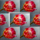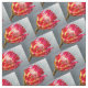 Ett vackert upprepande mönster av en enda proteablomma med mörk rosa petals och gult kant i fullt-blomman mot en medeltoning till grått-bakgrund. Perfekt för alla sydafrikanska dekormasker eller masker. Ett kvartsparti ger 3 trasa masker.