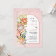 Tropiska proteablommor pampas-gräs och eukalyprus löv inbjudan till mjuk rosa-bågbröllop. Den här fina bröllop-designen har ett ram på nedfläckad för rosa med dina versaler och text. På den lämnat finns det proteablommor, pampasgräs och eukalyptus löv.