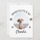 A warm and playful design celebrating the bond between people and their loyal dogs. Featuring a circular photo layout, paw print accents, and the phrase “Protected By,” this clean white design highlights love, protection, and companionship. Fully editable, allowing the photo and name text to be changed easily. A charming design that reflects comfort, trust, and everyday pet devotion.