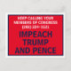 Bildbeskrivning: Röda versaler sans serif-text läser över 3 linjer, "Behålla call your Members of Congress (2002) 224-3121". Blåkapitälstexter läser över tre linjer, "Impeach Trump. and Pence"