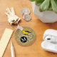 En söt, glad, skarp gult fågellips på en skugga som är förskönad med stiliserade snurrar och löv på en ljusbrun bakgrund i denna naturalistiska illustration. Anpassa den svarta cirkeln bredvid föraren med ett vitt monogram. Gör en unik outdoorsisk gåva till fågelskådare, naturen älskare, anställda och fridluftsmänniskor!