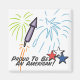 Den här designen har en raket med fyrverkerier och röda, vita och blå stjärnor med "stolt över att vara amerikan" tryckt på designen. Den här designen visas på olika stilar och storlekar.