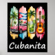 Proud Cubanita Cuban Flag Guitar Mojito Car Design Poster