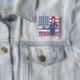 Knappen Proud Democrat Woman med USA:s amerikanska Flagga Bakgrund