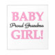 Proud Grandma of a Flicka keepébox, tiles, prydnadsföremål, anteckningsböcker, mugg, kort, klistermärken, tote bags, magnet, nyckelkedjor och andra stolta barnkläder och presentartiklar med rosa och svart text.