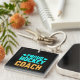 Nyckelkedja för hockey-bussen med akvblått och guld står i texten Proud Hockey Coach.