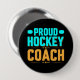 Knappen för hockey-buss med akvblått och guld står i texten Proud Hockey Coach.