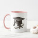 En tidlös examensmugg skapad speciellt för stolta mödrar som firar en speciell akademisk milstolpe. Med en elegant monokrom examensdesign, gör denna mugg en genomtänkt gåva för examensdagen, familjefiranden och vardagliga kära minnen. Perfekt för att hedra glädjen, stoltheten och kärleken hos en examenstudentens mamma.