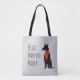 Den här fina tote-väskan har en elegant svart podenco-hund som bär en slående röd bandana med texten Proud Podenco-Mamma bredvid den. Du kan ändra texten om du föredrar det under Anpassa.