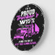 Den här kärlekens väggklocka är en stolt förklaring från en hängiven lastbilschaufföres fru. Mot en svart bakgrund med en vibrerande rosa fälg är det ett halvkallt lastbil i skuggor av rosa. Den framstående texten "Jag är en stolt lastbilschaufför och jag är med i det för LONG HAUL" firar hennes orubbliga stöd och engagemang. Det är en perfekt gåva för att hedra en lastbils partners styrka och kärlek. Verktyg kan också användas för att lägga till anpassningsbar om du vill ha ditt namn eller företag på den här klockan. Du kan anpassa färg i ram till valfri färg genom att gå in på verktyg.