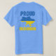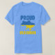 Proud ukrainska i färgen av gult och blå t-shirt i blå bakgrund