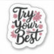 Detta är en utformning som är till för dem som behöver uppmuntran. Den har följande fras: Försök på bästa sätt. Det är en perfekt gåva till dig, dina vänner och din familj. Hämta din i dag!
