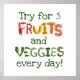 Uppmuntra till att äta mer frukt och grönsaker med den här teckningen av mitt fonetiska matalfabet. Den spådomar ut "Prova fem frukt och grönsaker varje dag"